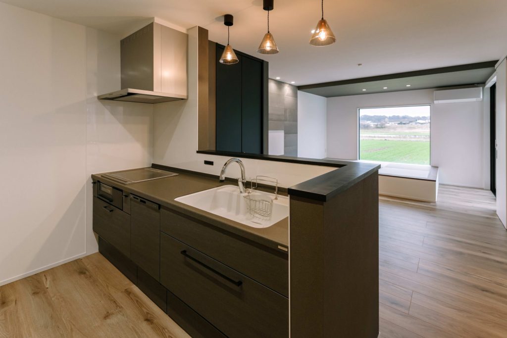 『モデルハウスとして建てた住宅の為キッチン照明を吊り下げ