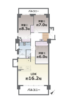 室内設備:カウンターキッチン、温水洗浄便座、フローリング